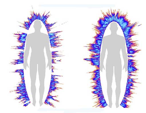 Campos de energia de atletas russos antes e após tratamento com cura reconectiva